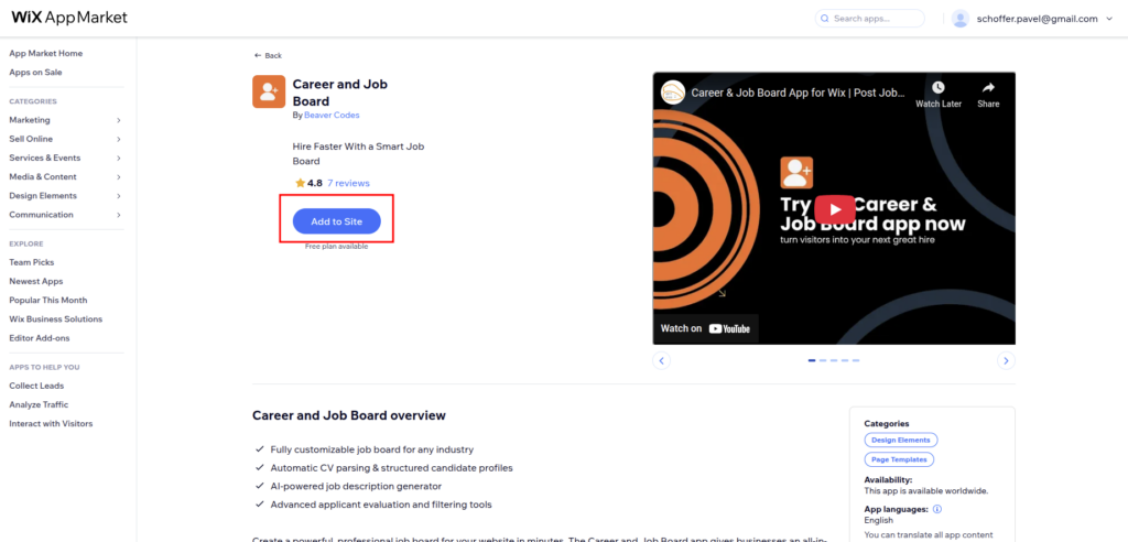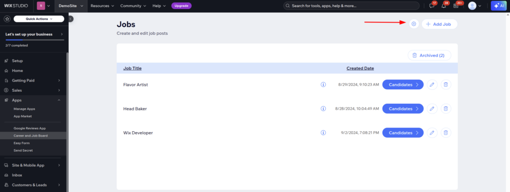 - From Wix Dashboard: Navigate to Apps > Career and Job Board